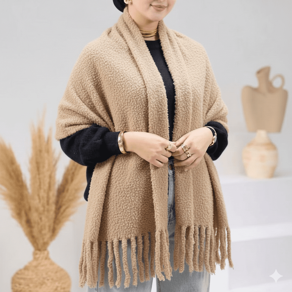 شال شتوي فاخر بخامة موهير خفيفة تديك إحساس بالنعومة والراحة طول اليوم.